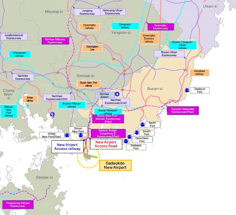 - A multi-modal logistics hub integrating the new airport with Busan New Port.