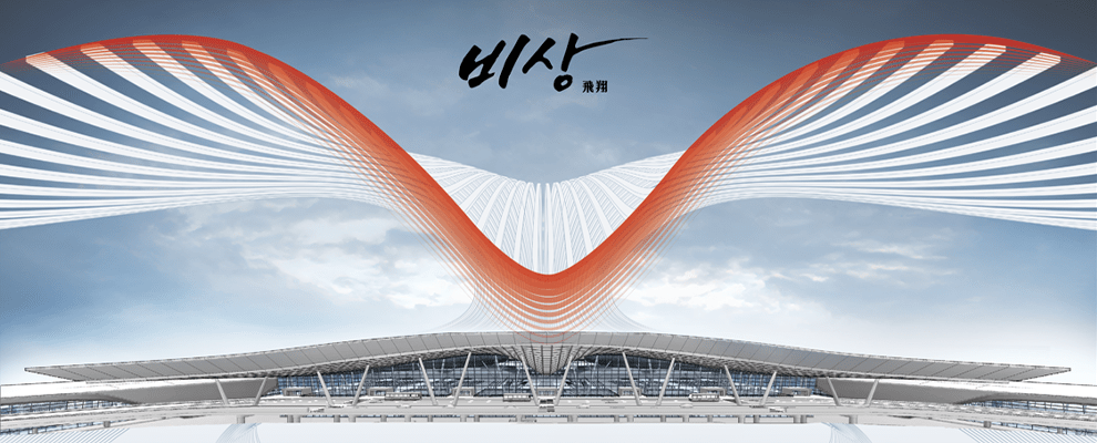 여객터미널 전면부터 내부 공간까지 연속되도록 건축물을 구성